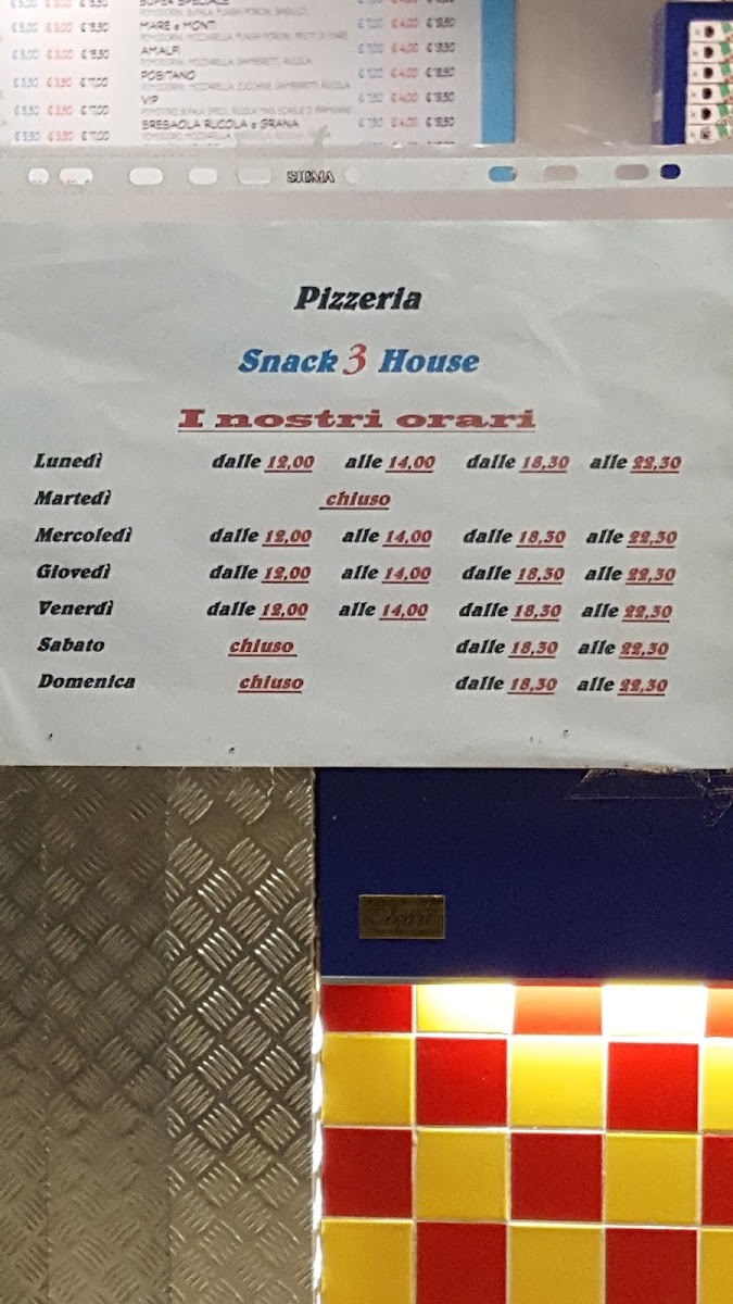 The menu at Pizzeria Snack House 3 offers a delightful blend of classic flavors and inventive twists, catering to both traditionalists and those seeking something unique. The Pizza Margherita stands out for its perfectly balanced simplicity, with a crisp crust, rich tomato sauce, and fresh mozzarella that embodies authentic Italian comfort. For those craving a more indulgent experience, the Pizza Specialità presents a variety of gourmet toppings that elevate the traditional pizza into a sophisticated treat, satisfying both adventurous and seasoned palates. Meanwhile, the Ottime Pizze selection showcases the restaurant’s commitment to quality, with each pizza baked to perfection and thoughtfully crafted to highlight fresh ingredients. The menu balances affordability and creativity, ensuring each dish delivers on taste without compromising on presentation. Overall, Pizzeria Snack House 3 succeeds in offering a menu that is both approachable and memorable, making it a standout choice for anyone seeking a satisfying pizza experience in Rubiera.
